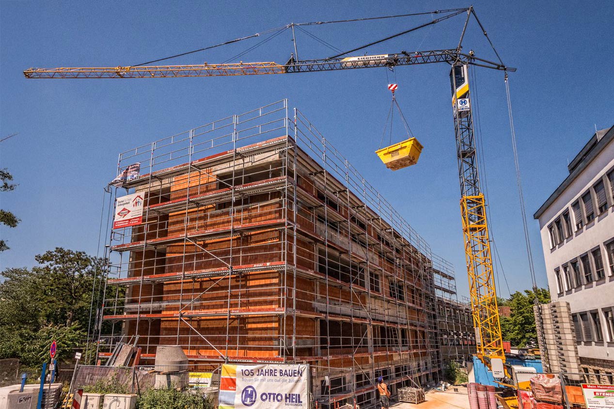 Das erste und zweite Untergeschoss ist in WU-Stahlbeton auf bewehrter Fundamentplatte, das Erdgeschoss bis zum zweiten Obergeschoss in HLZ-Mauerwerk ausgeführt.