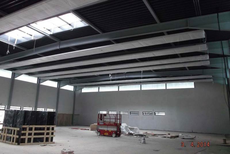 Vor Baubeginn wurde das alte Foyer abgerissen. Die neue Halle wurde mit einem zweigeschossigen, verglasten Foyer direkt mit der bestehenden Halle verbunden. Im unteren Teil des Foyers befinden sich ein Behinderten-WC und verschiedene Lagerräume. Im OG entstand eine neue Toilettenanlage für Besucher, sowie ein Zugang zur Tribüne der Bestandshalle, welche mit Hilfe eines Aufzuges barrierefrei zu erreichen ist. Im Anbau der neuen Halle befinden sich die Umkleiden, ein Besprechungszimmer für Lehrer und Schiedsrichter sowie die Technikräume. Die Sporthalle wurde als Stahlrahmenkonstruktion ausgeführt, mit Ausfachungen aus Mauerwerk und Stahlbeton. Die Dreifach-Sporthalle ist mittels 2 Trennvorhängen in drei Hallenteile mit je 15 x 27 m teilbar.