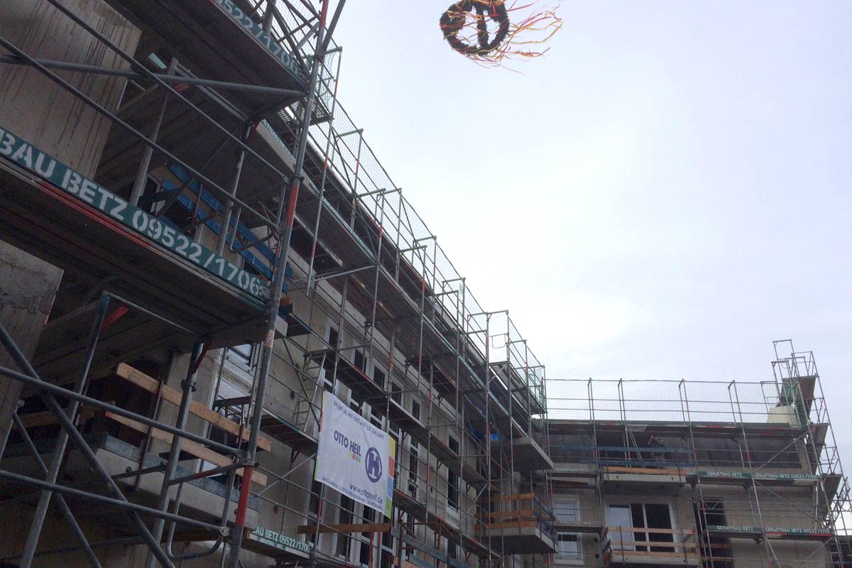 Das viergeschössige Gebäude wurde in Massivbauweise mit einem Mansarddach errichtet, welches voll unterkellert ist. Schwerpunkt bei der Planung war eine gemischte Nutzung mit einer Barrierefreiheit über alle Geschosse. Hierbei sind vom Untergeschoss bis zum Dachgeschoss 55 Wohneinheiten entstanden, die für ältere Menschen geplant sind. Von den 55 Wohneinheiten sind sechs im Untergeschoss entstanden, die mit einem auskragenden Balkon über den Fluss Wiesent ausgestattet sind. Im Erdgeschoss sind Räumlichkeiten für eine Tagesklinik entstanden, sowie ein Stadtteiltreff mit Café. Um eine Anbindung vom Stadtteiltreff zu der gegenüberliegenden Stadtbibliothek zu schaffen wurde eine Brücke über der Wiesent errichtet.