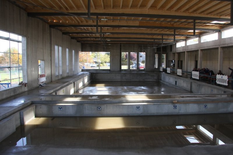Der Zweckverband Altdorf errichtet den Neubau einer Schulschwimmhalle. Der Neubau ist mit einem 25 m Becken sowie einem Lehrschwimmbecken ausgestattet. Der Schwimmhalle vorgelagert sind die Umkleidekabinen sowie der Foyerbereich.
