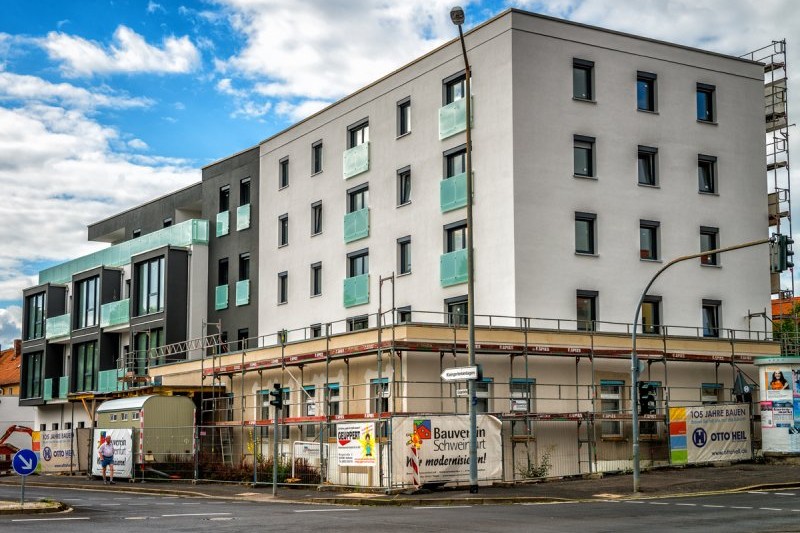 Der Bauverein Schweinfurt baut das bestehende Verwaltungsgebäude in Schweinfurt, Gartenstadtstraße 1, um und erstellt auf dem Grundstück Gartenstadtstraße 3 einen neuen Anbau in Stahlbetonbauweise. Als neuen, modernen Kundenbereich seiner Verwaltung möchte der Bauverein das Erdgeschoss mit rund 260 Quadratmetern selbst nutzten. Elf Wohnungen in den drei Etagen darüber werden vermietet. Für die Errichtung des Untergeschosses war zur Gartenstadtstraße hin ein Berliner Verbau notwendig. Die freigespannten Decken im Neubau wurden als Hohlkörperdecke nach dem System COBIAX hergestellt um Gewicht zu sparen. Auch das Bestandsgebäude mit seinen acht Wohnungen und rund 620 Quadratmetern Nutzfläche wird modernisiert.