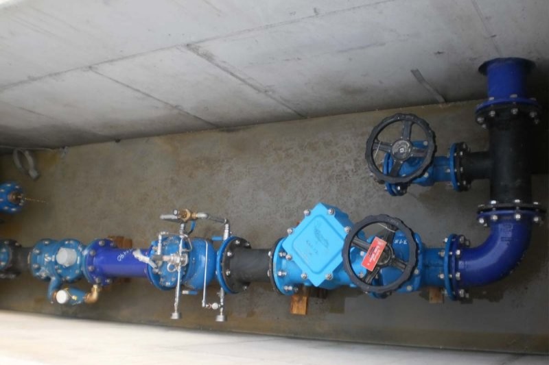 Herstellen eines Betonschachtes inkl. dem Einbau eines Rohrsystems aus duktilem Gusseisen und deren Armaturen zur Steuerung und Minderung des ankommenden Wasserdrucks zur Versorgung eines Wohngebietes. Druckzonentrennung einiger Wasserversorgungssysteme und die Einbindung in das neue System.